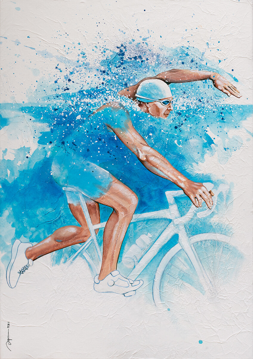 TRIATHLON 21 - 65 x 92 cm - VENDU / Sold outSWIM BIKE RUN - 65 x 92 cm. VENDU / Sold outTriWoman - 65 x 92 cm - VENDU /  Sold out